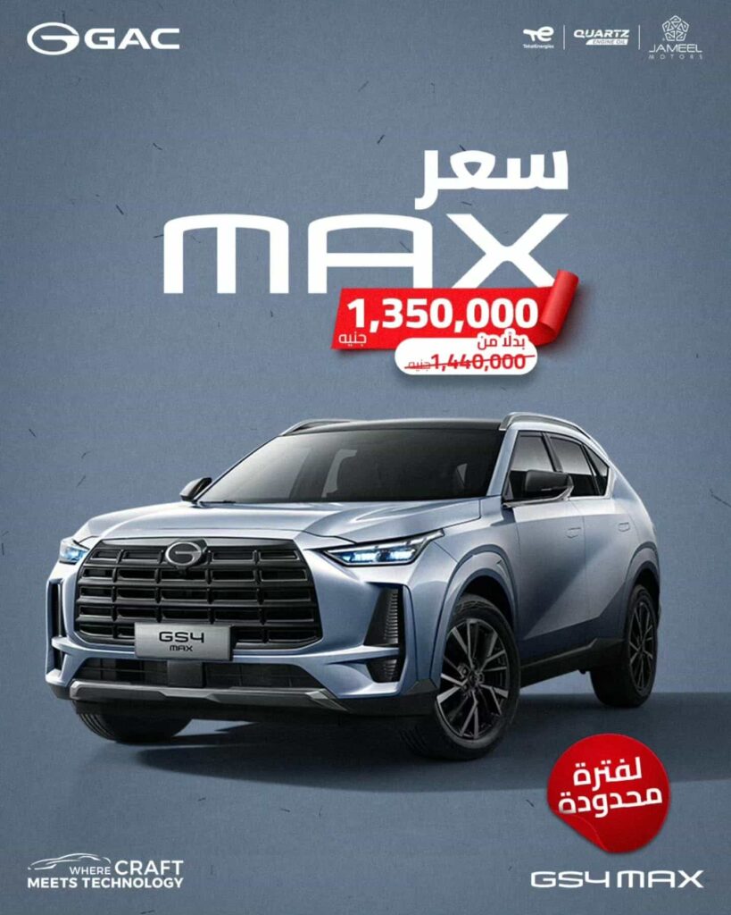شاهندة إبراهيم – أعلنت شركة جميل موتورز تخفيض أسعار السيارة GAC GS4 MAX بقيمة 90 ألف جنيه لفترة محدودة.