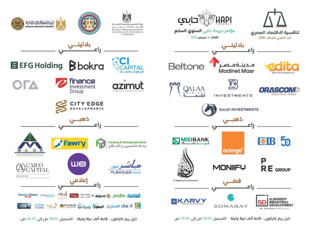 حابي _ تعقد جريدة حابي مؤتمرها السنوي السابع يوم الثلاثاء 16 ديسمبر الجاري، تحت عنوان (تنافسية الاقتصاد المصري – العد التنازلي لأهداف 2030)، برعاية الدكتورة رانيا المشاط وزيرة التخطيط والتنمية الاقتصادية والتعاون الدولي، وأحمد كجوك وزير المالية، والدكتور محمد فريد رئيس الهيئة العامة للرقابة المالية، وذلك بفندق نايل ريتز كارلتون، قاعة ألف ليلة وليلة.