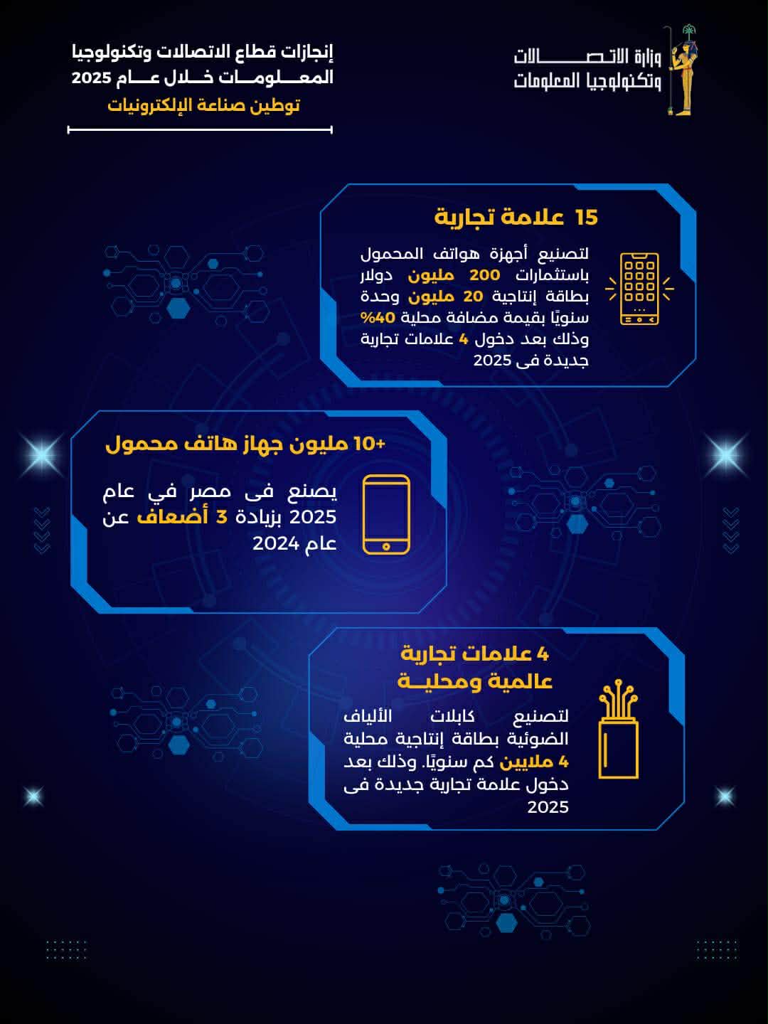 إطلاق منظومة حوكمة الهاتف المحمول بداية من 1 يناير 2025، والتي ساهمت في تحفيز الشركات العالمية على الاستثمار والتوسع في التصنيع المحلي.