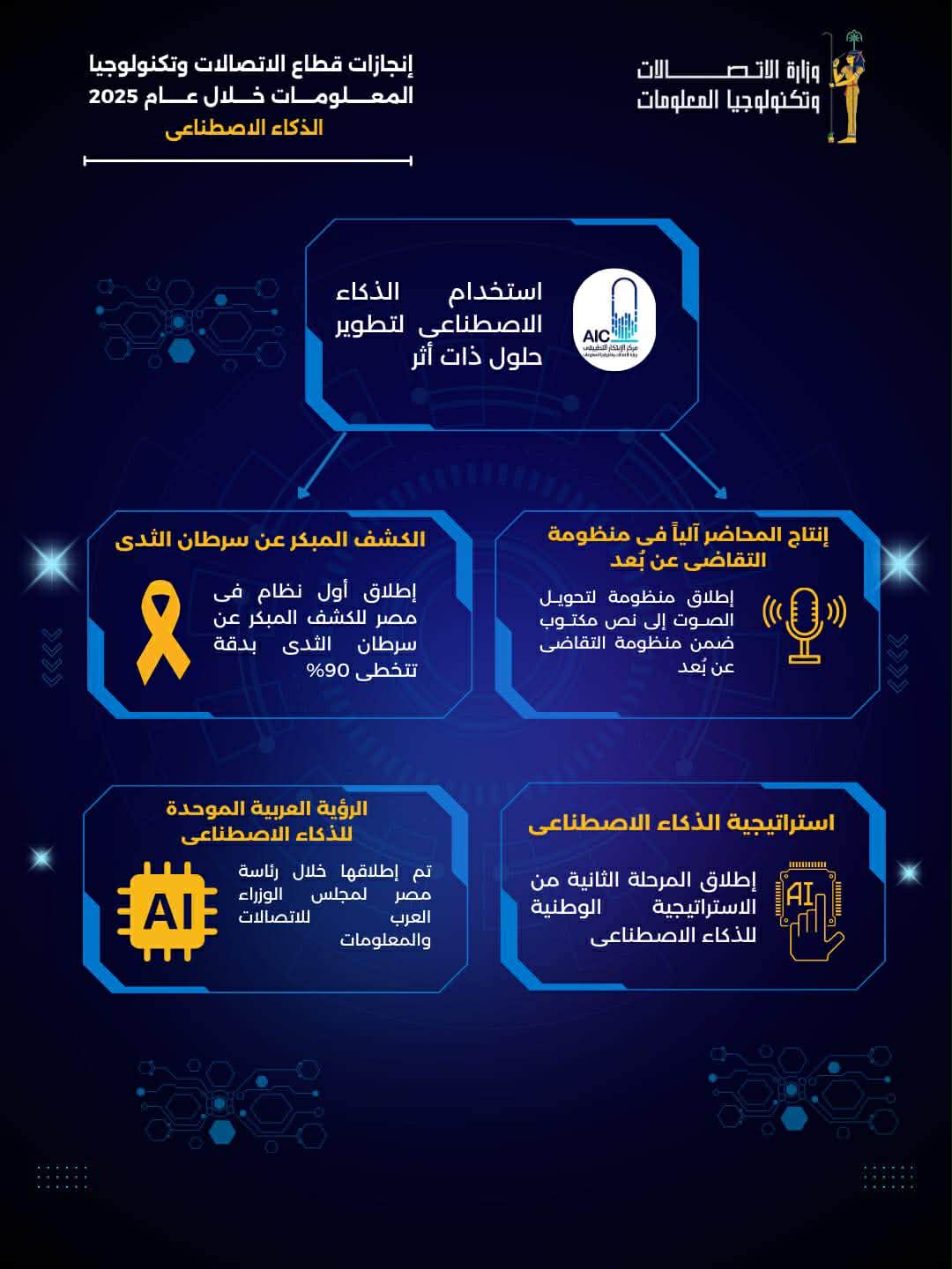 إطلاق تقرير تقييم الجاهزية الوطنية للذكاء الاصطناعي بالتعاون مع المكتب الإقليمي لليونسكو في مصر والسودان، وبتمويل الاتحاد الأوروبي، بهدف تقييم جاهزية مصر لتبني الذكاء الاصطناعي بشكل مستدام ودعم السياسات الوطنية في هذا المجال الحيوي.