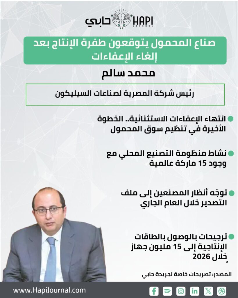 أوضح سالم في تصريحات لجريدة حابي، أن قرار إطلاق منظومة حوكمة أجهزة الهواتف المحمولة الذي دخل حيز التنفيذ 1 يناير 2025 وضع حجر الزاوية في عملية تنظيم السوق، وصولًا إلى الخطوة الأخيرة المتمثلة في انتهاء فترة الإعفاءات الاستثنائية للأجهزة الواردة من الخارج بصحبة الراكب.