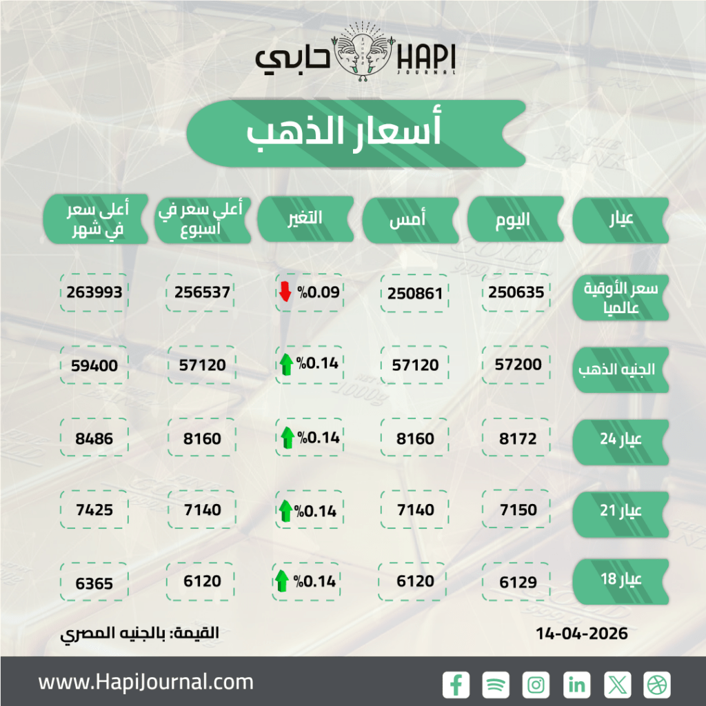 وعلى الصعيد العالمي، ارتفعت أسعار الأوقية من نحو 4,740.95 دولاراً إلى 4,776.35 دولاراً، بنسبة زيادة تقارب 0.75%، في حركة تعكس تذبذباً محدوداً داخل نطاق ضيق.