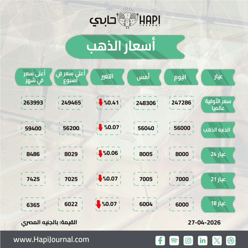 كما استقرت الأوقية عالميًا عند 4710 دولارات، بحسب بيانات مجلس الذهب العالمي.